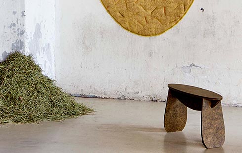 Die lettische Designerin Tamara Orjola nutzt Kiefernadeln, um biologisch abbaubare Produkte wie Wohntextilien, Teppiche oder Kleinmöbel herzustellen.