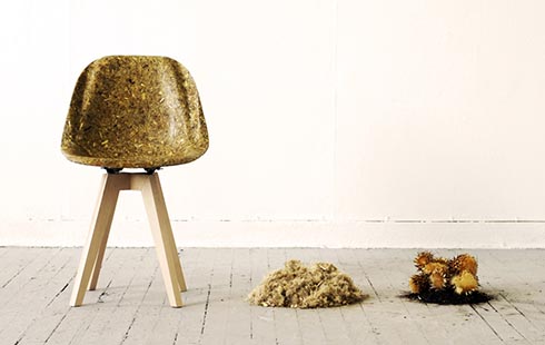 Für seinen Dining-Chair ARTICHOKE DISTEL verwendete Spyros Kizis eine Mischung aus Distelfasern und einem biologischen Bindemittel zur Umsetzung einer Sitzschale für das berühmte Eames-Vorbild.