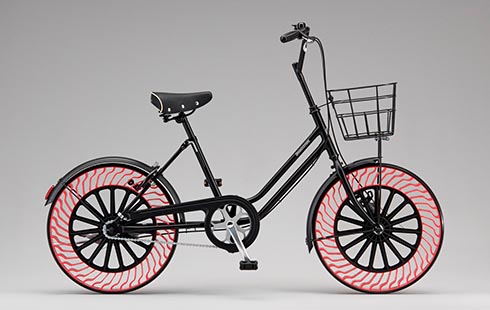 Bridgestone will bis 2019 einen wartungsfreien Fahrradreifen auf den Markt bringen. Für die nötige Federung sollen zukünftig gebogene Lamellen aus Kunstharz sorgen.